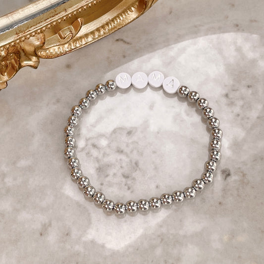 Mama Silver Beaded Bracelet (Single Bracelet)