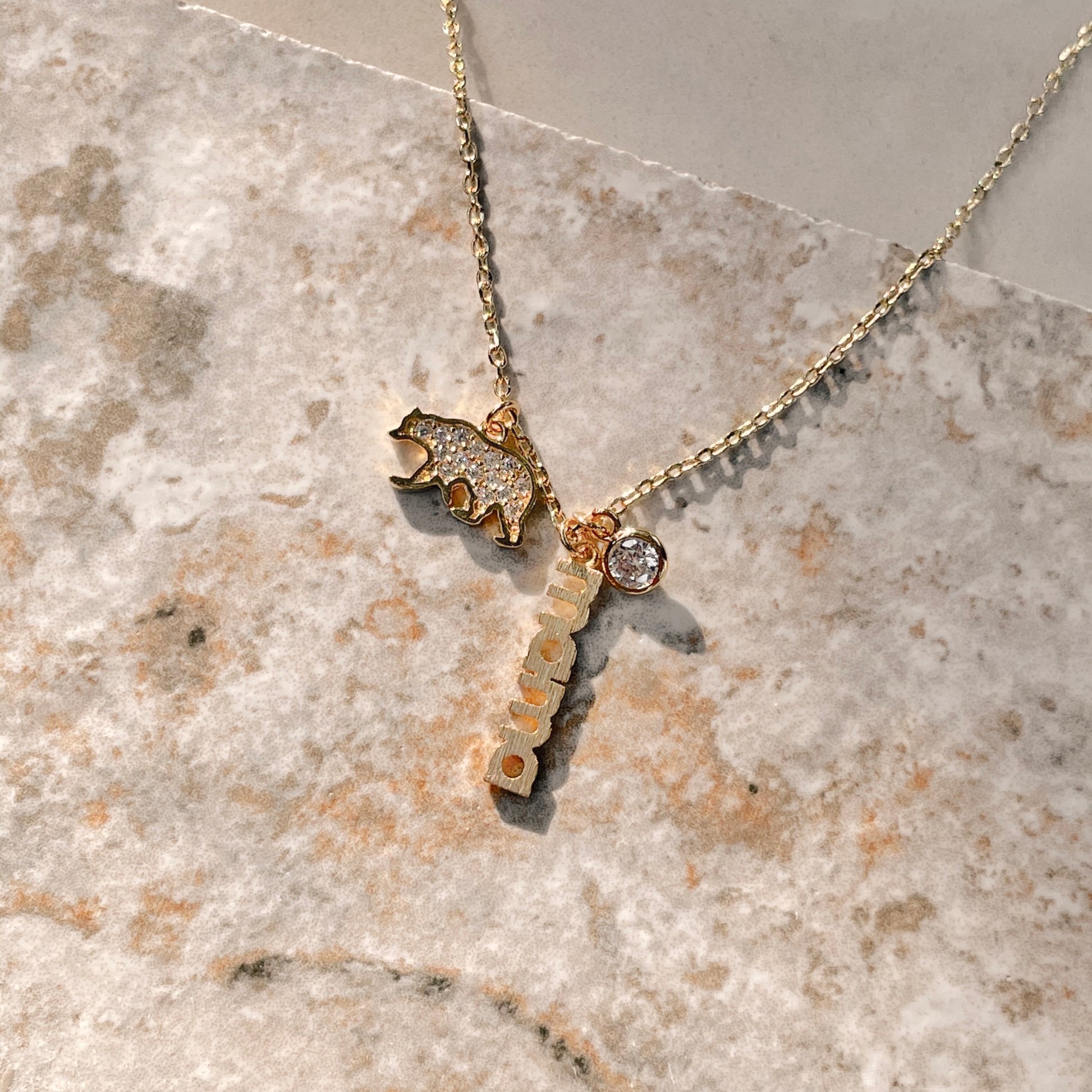 ★ Dainty gold Mama necklace with bear and crystal pendant