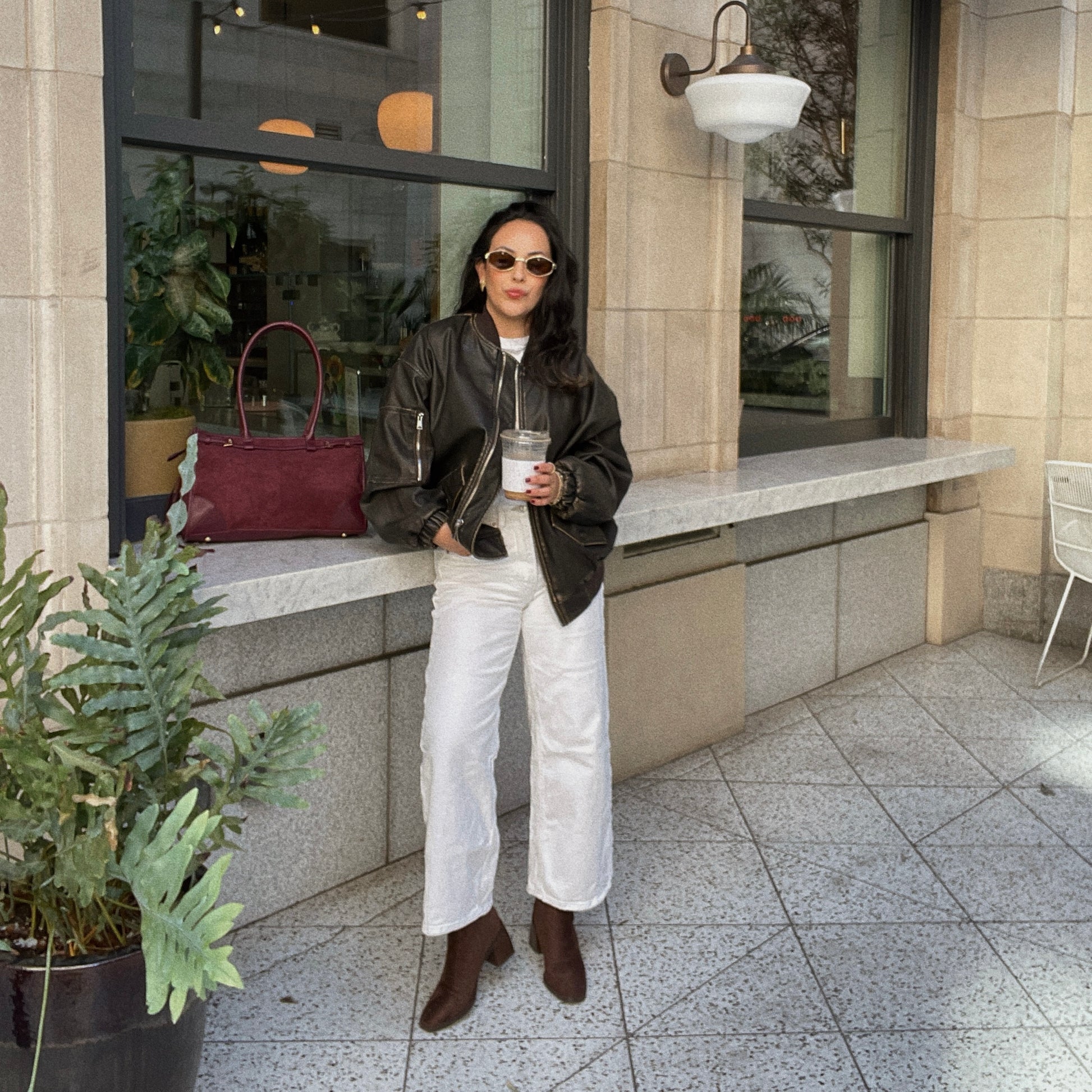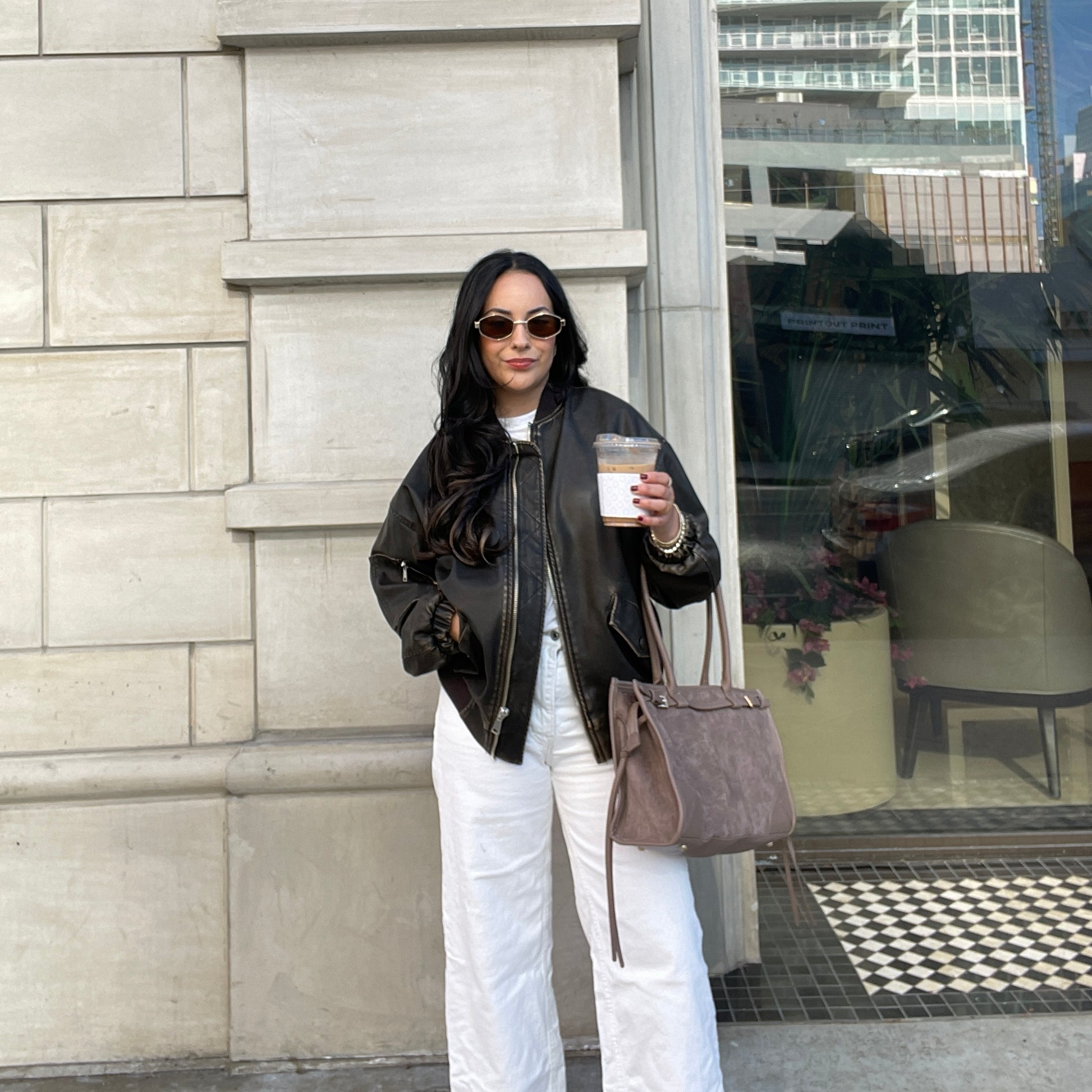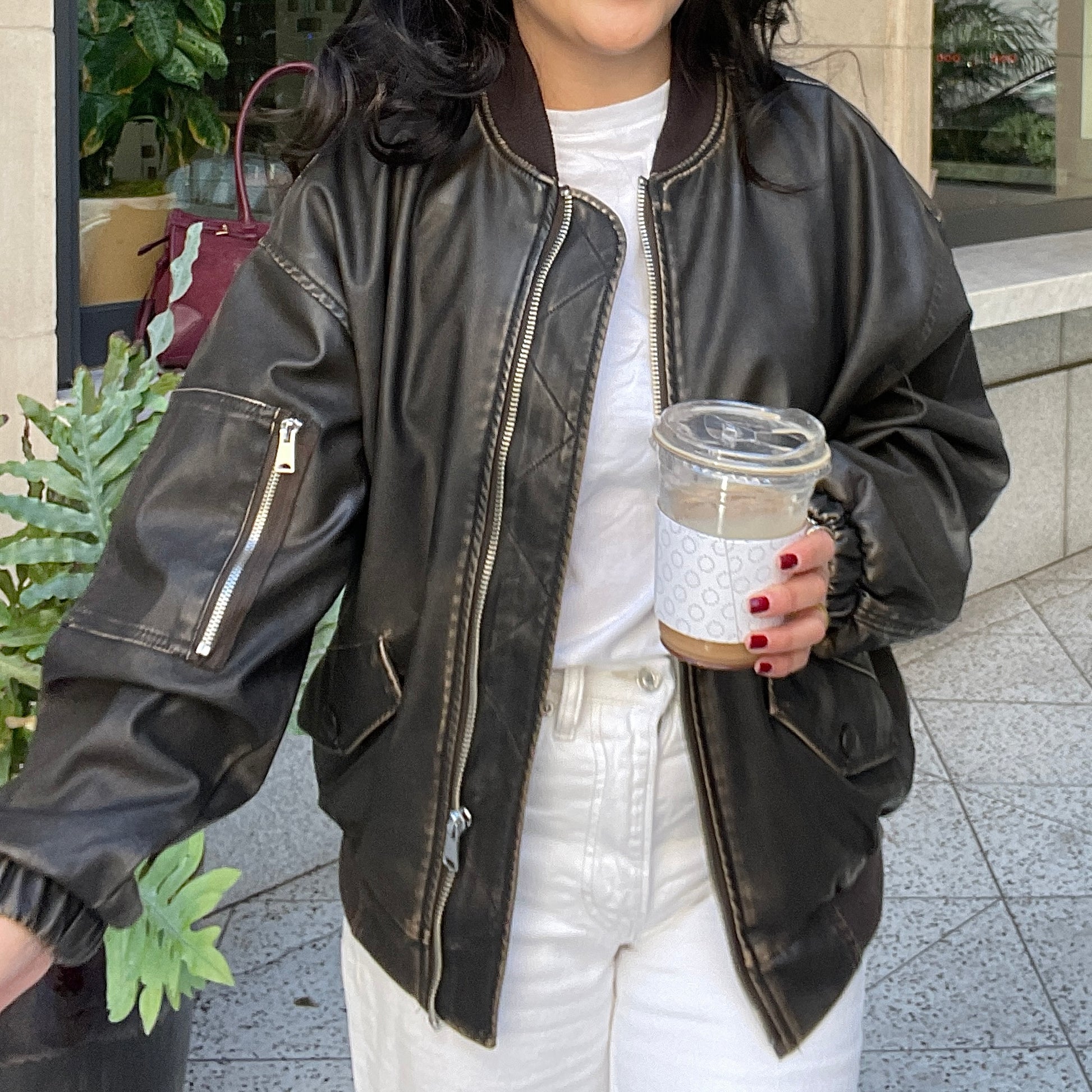 ★ Oversized faux leather zip up bomber jacket